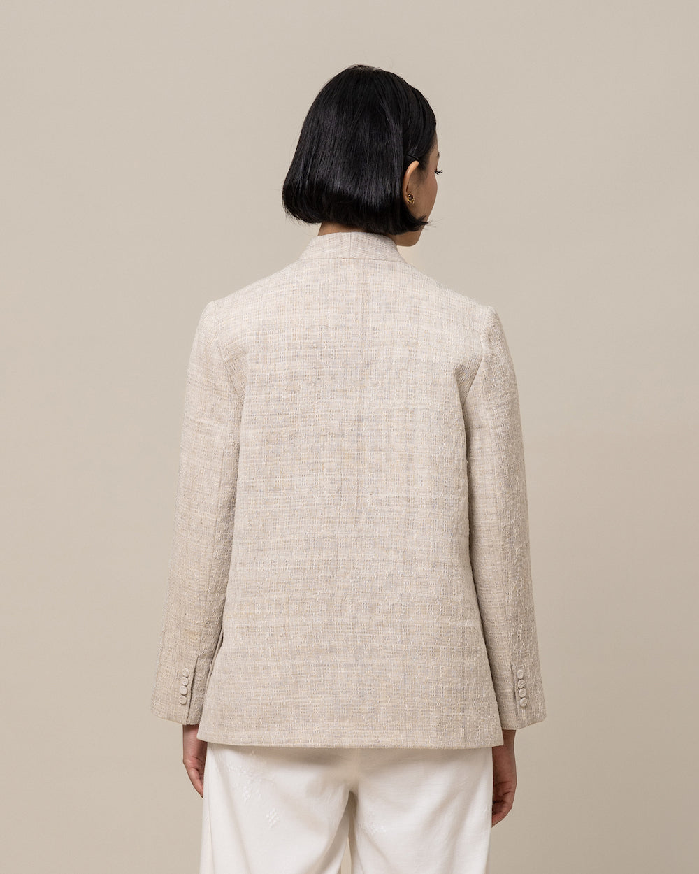 A piece that makes layering effortless. The Oversized Blazer is tailored from our sturdy handwoven regenerative cotton. With a soft Eucalyptus fibre linings to keep it breathable and comfortable. Keeping you warm during transitional seasons and all year round.